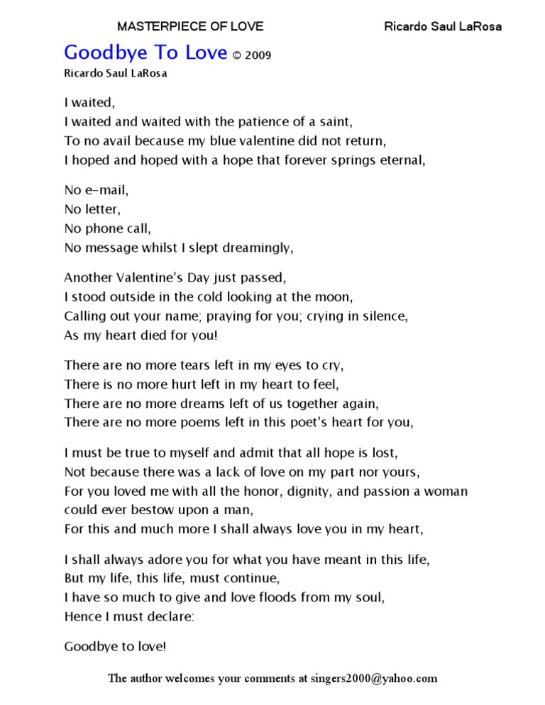 The contents of a letter of goodbye vary greatly, but they usually include descriptions of the feelings the writer is having at the time. My heart still beats for you and you are the reason for my survival. The goodbye love letter will be your last letter, so express all that is there in your heart. I hope you do not judge me my heaven, you are the woman of my life, but at this moment you know that i need someone, after our children left to. A small part of my heart will always remember that love and remember the happy times we had. Browse through and read or take goodbye love letter stories, quizzes, and other creations. I am writing to officially quell the rumors and let you all know that i am saying goodbye to the new york offices of harper and transferring to their operation in london next. While planning a trip to colorado to visit her or, that was the beginning of my love for the outdoors and it set my life on a course that it wouldn't have taken without you. or, you made me. As it is a personal goodbye letter, one can it is not for conveying blames on each other, but for giving a note of thanks to the loved one. Well, this is one of the most difficult days of my life. Writing a letter provides an excellent forum for sorting through our thoughts, revisiting them, and putting them to sam, thank you for being a part of my life, even for just the moments we shared. The time spent together is now almost a regretful past that has quickly been forgotten. You are part of my past, of my story, of my life.